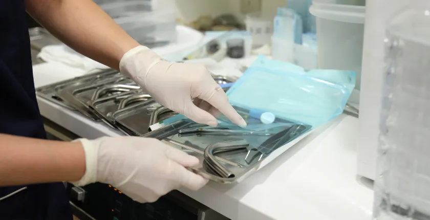 治療機器の衛生管理には細心の注意を払い、滅菌パックされた器具を使用しています。