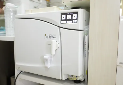 当院では、患者のお口の中に入れるものについては細心の注意を払い滅菌しております。 滅菌器具は、滅菌能力の高いの専用の歯科用洗浄機で洗った後、更にBクラスの高圧蒸気滅菌器で処理をしております。 また院内は、歯科クリニックらしくない落ち着いたインテリア。通路は広めで開放感があり、間接照明が安らぎの雰囲気を演出。リラックスした気持ちで、安心して治療を受けることができます。 また、当院では患者様のプライバシーの配慮にも努めています。たとえば、患者様の動線とスタッフ動線が異なるため、患者様は治療中のほかの患者様の姿を目にすることがありません。