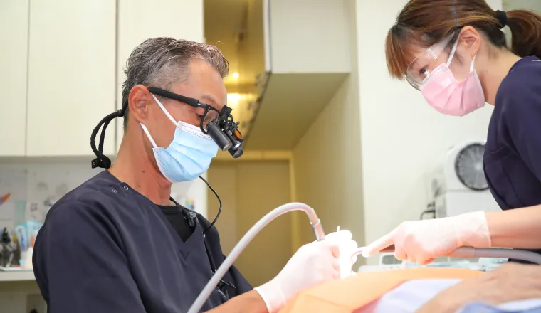 歯周病の治療はご自宅でのケアが重要になります。それに加え、歯科医師や歯科衛生士が行うプロフェッショナルなケアを行い歯周病を治していきます。むし歯のように削って詰めるだけではなく、口内の環境を改善していく必要があるため、一度歯周病になってしまえばレントゲンや歯周病検査をして、状態を確認した上で治療に時間がかかるため、根気よく取り組む必要があります。当院のプロフェッショナルなケアでは、PMTC(機械的歯面清掃)を行っています。ご自身ではどうしても取ることができない細かな汚れを除去することが可能です。