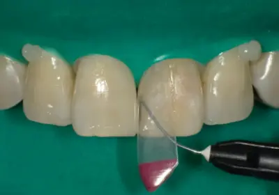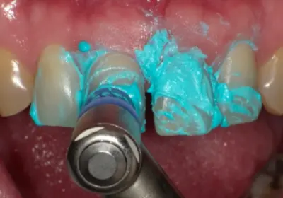 歯の表面を清掃してコンポジットレジンを接着させる準備をします