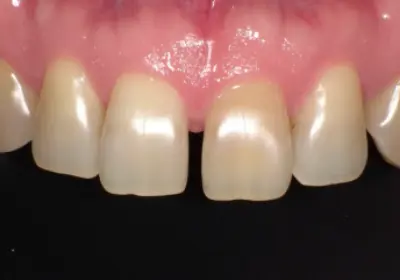 治療前の状態を確認し、前歯の隙間を矯正治療以外で歯を削らずに閉じる方法を提案します