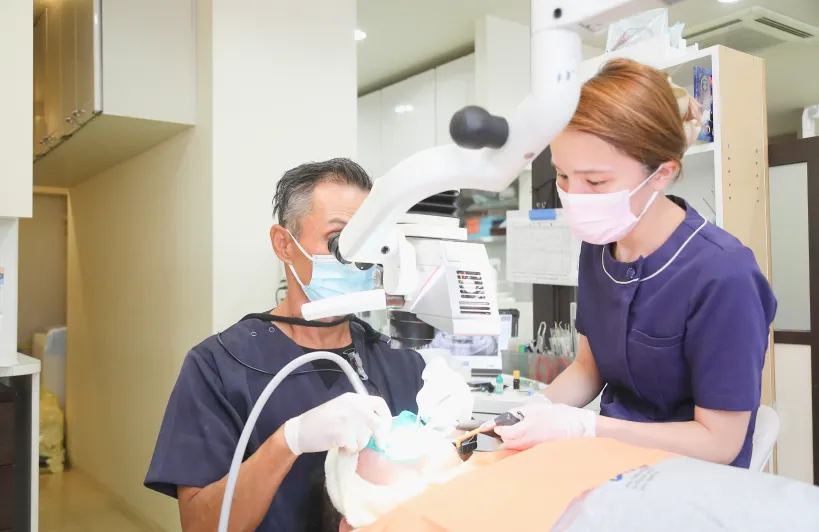 歯科衛生士・歯科助手は、歯ぐきの検査や患者様へのブラッシング指導、フッ素塗布などに従事していただきます。歯科衛生士は常勤2人、パート1人。協力し合いながら業務を行います。交代するときは、引き継ぎもしっかり行います。